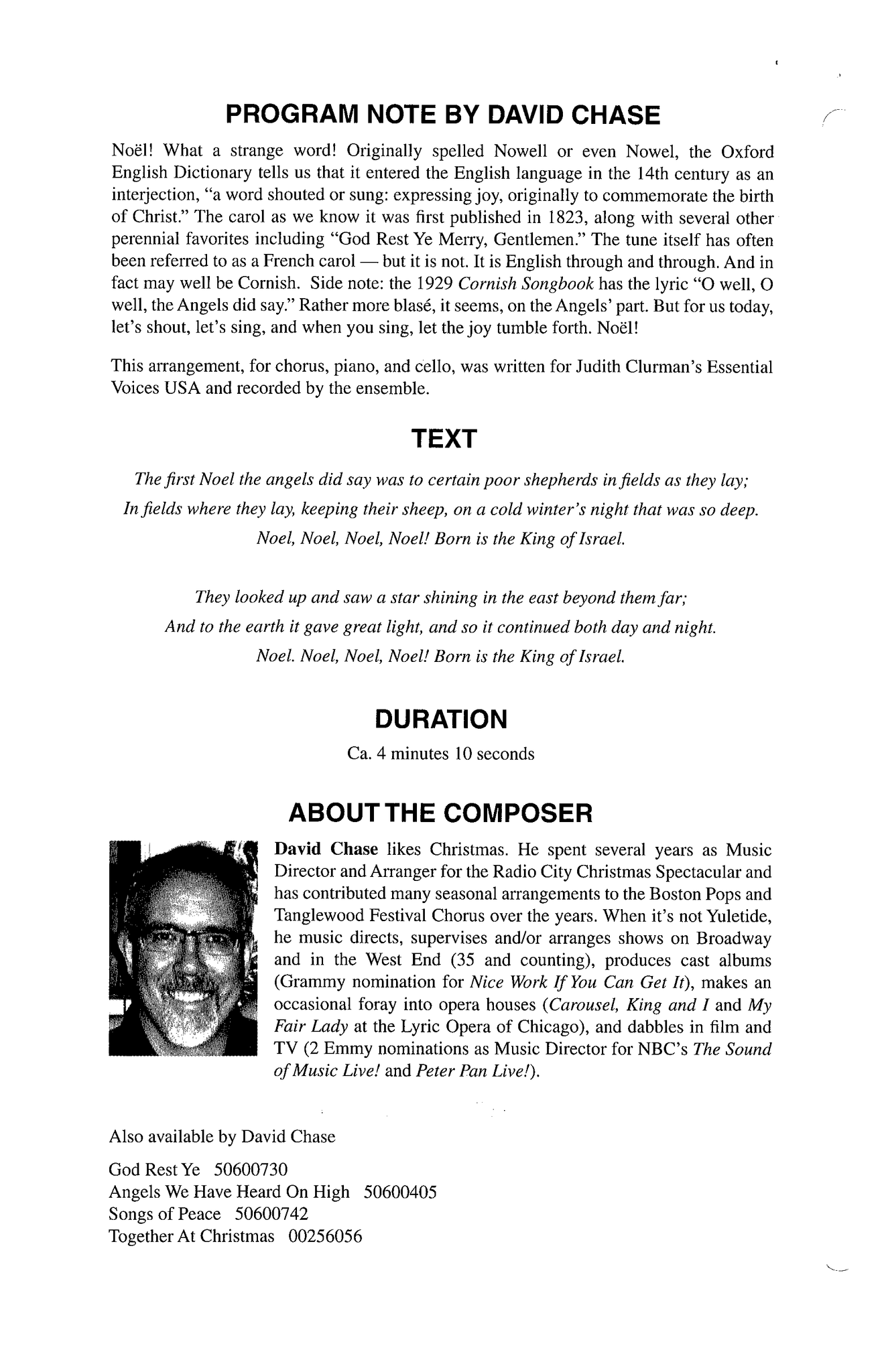 ARRANGER - David Chase