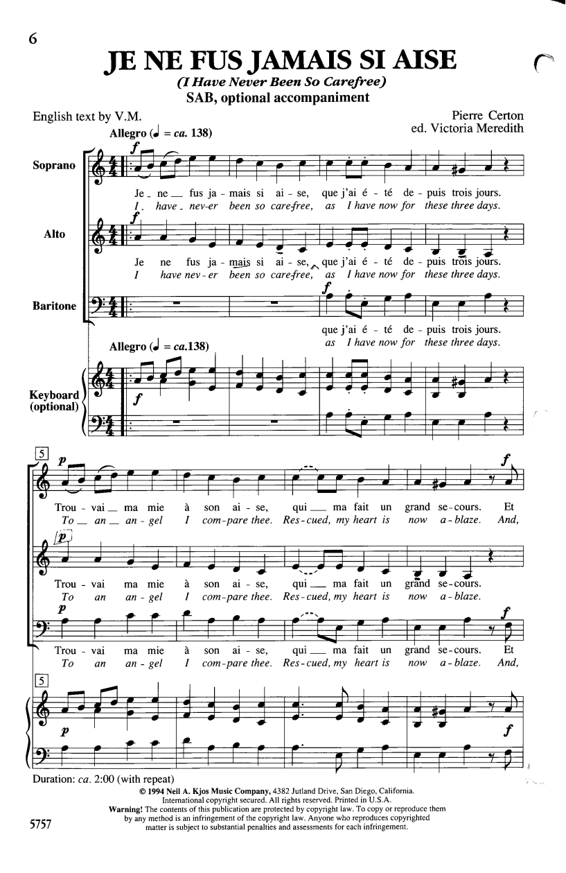 Je Ne Fus Jamais Si Aise