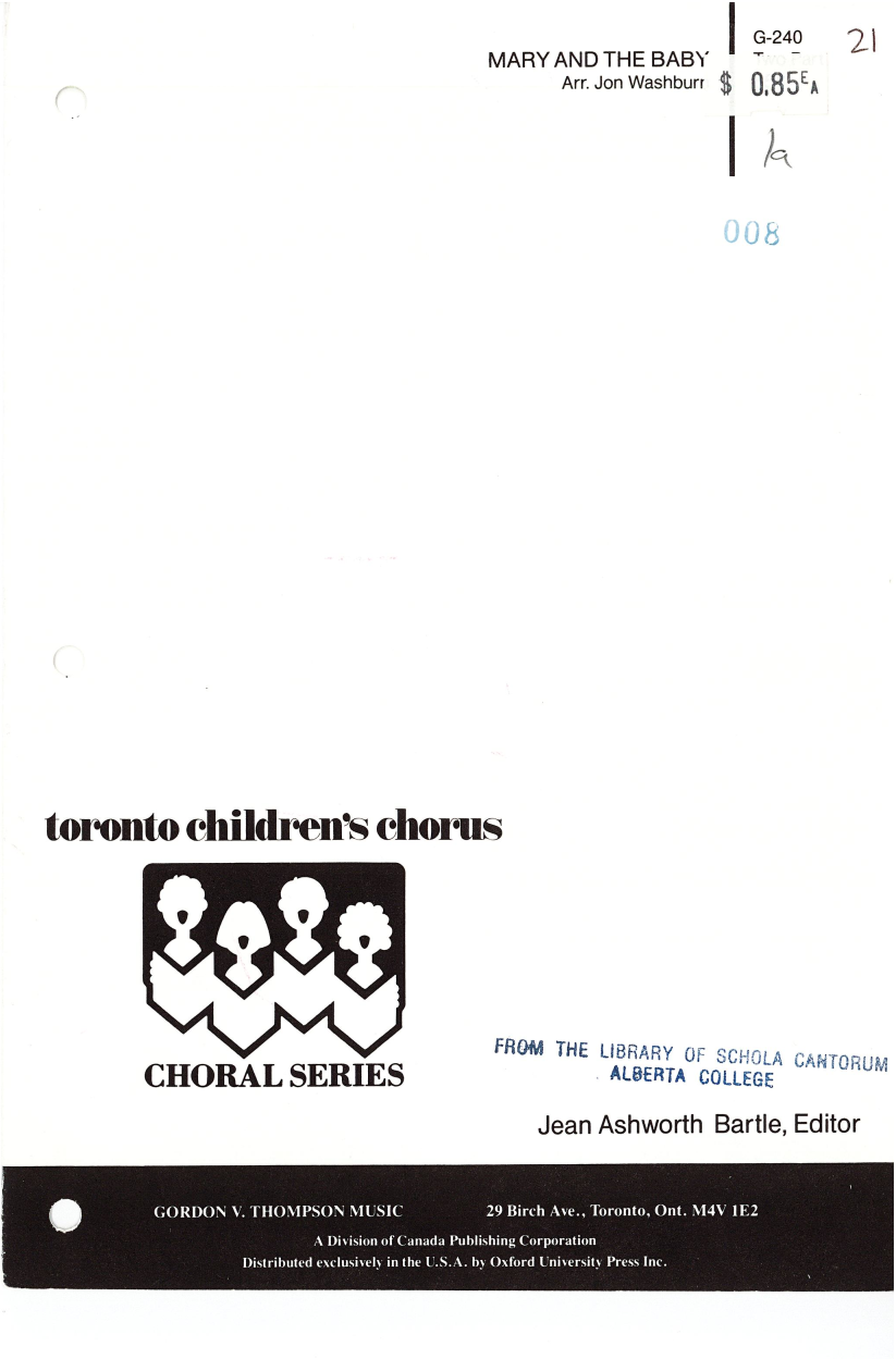 PUBLISHER - Gordon V. Thompson