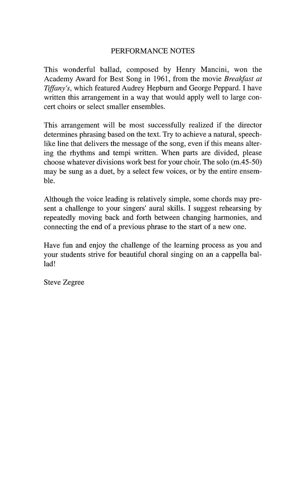 ARRANGER - Steve Zegree