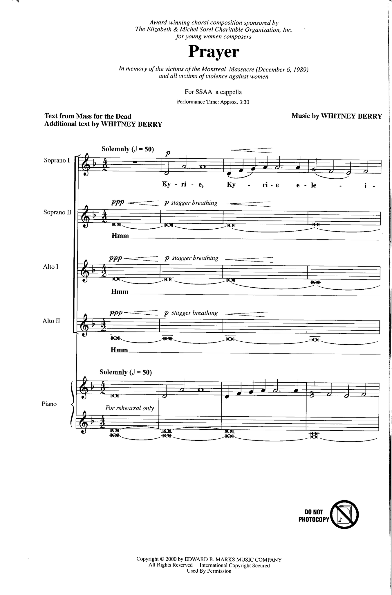 NOTES - Text from Mass for the Dead, additional text by Whitney Berry