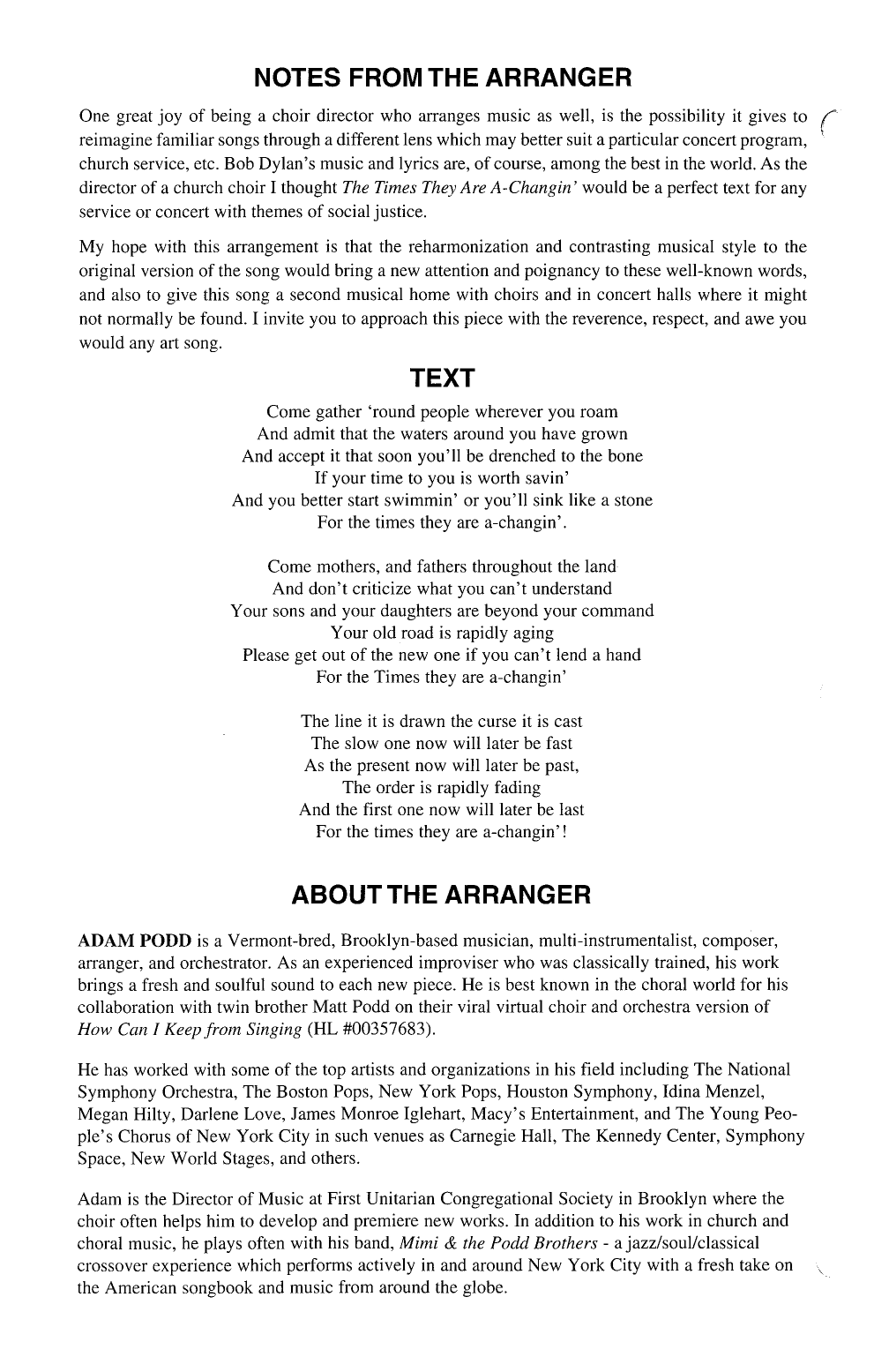 ARRANGER - Adam Podd